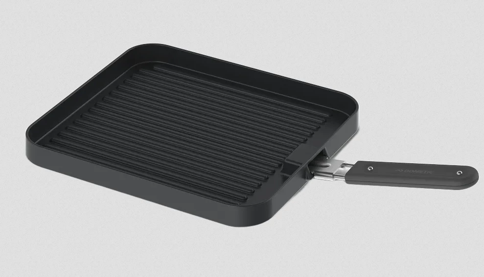 Yleispätevä kylkipintainen grillilevy, joka sopii kaikkiin liesimerkkeihin, myös Cadac Dometic 2 Cook -mallistoon.