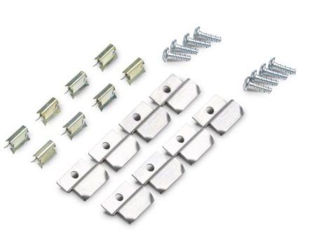 Asennussarja, jossa on kiinnikkeet ja ruuvit Micro Heki -kattoluukkujen vaivattomaan asennukseen.