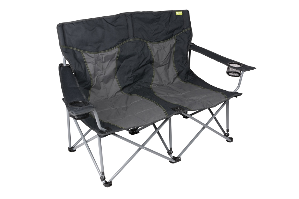 Kahden hengen kokoontaitettava retkeilytuoli, harmaa. Istuudu ja rentoudu Lofa-tuolin matalassa istuimessa retkeilyn jälkeen. Kevyttä tuolia on helppo kuljettaa, ja se voidaan taittaa nopeasti kokoon tilaa säästävää säilytystä varten.
