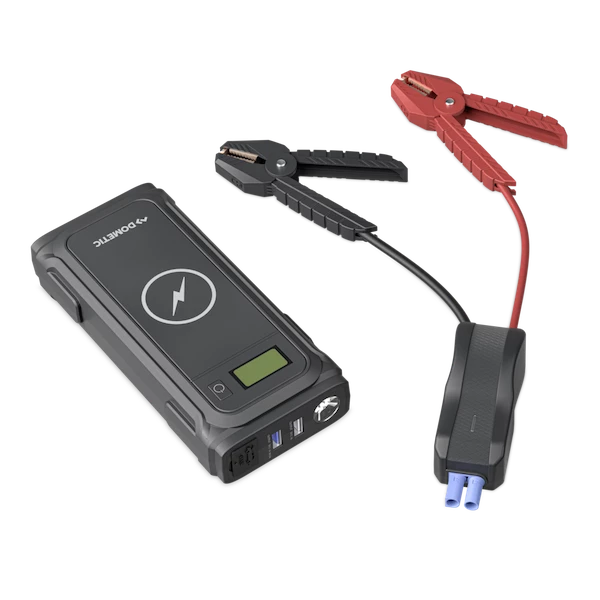 Virtapankki, jolla käynnistät myös ajoneuvosi! Tämä kompakti laite sisältää hyödyllisiä ominaisuuksia – kuten kaksi USB-porttia digitaalisten laitteiden lataamiseen, langaton latausalusta älypuhelimellesi, 12 V DC -pistorasia kylmälaukullesi ja kaksi käynnistyskaapelia. Superkirkas LED-valo on kätevä hätätilanteissa, esim. sähkökatkon aikana tai kun autoon tulee ongelmia yöllä. Dometic PJS1000:n teho riittää 6,0 litran bensiinimoottoreiden tai 4,0 litran dieselmoottoreiden käynnistykseen. Sen integroitu litiumakku tuottaa 1000 A huipputehoa – riittää 30 tehostettuun käynnistykseen yhdellä latauksella.