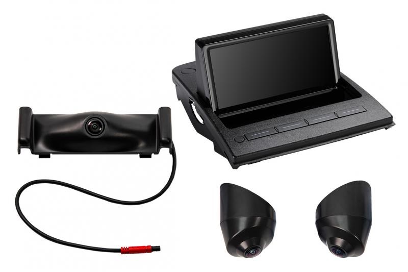 Koostuu yhdestä taitettavasta näytöstä ja yhdestä etu- ja kahdesta sivukamerasta. Sivukameroiden automaattinen aktivointi suuntavilkuilla.