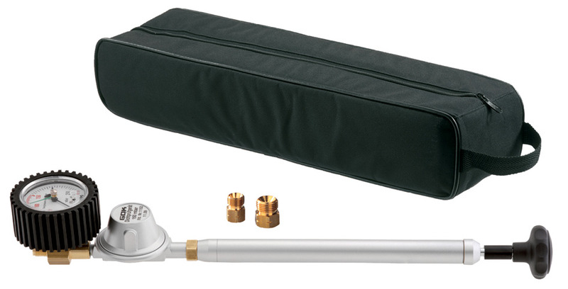 Tiiveyden tarkastamiseen nestekaasujärjestelmissä vapaa-ajan ajoneuvoissa DVGW-laskentataulukon G 607, ÖVGW-työtaulukon G 107 ja EN 1949 mukaisesti sekä pienvesikulkuneuvoissa DVGW-työarkin G 608 ja EN ISO 10239 mukaan. Paineenrajoitin estää painemittarin vaurioitumisen.Sisältää: paineenrajoitin, koepainemittari 0-250 mbar laatuluokka 1.0 (paineenkestävä 2.5 bar asti), käsipumppu, kuljetuspussi ja kaksi liitintä G 1/4 lh F x