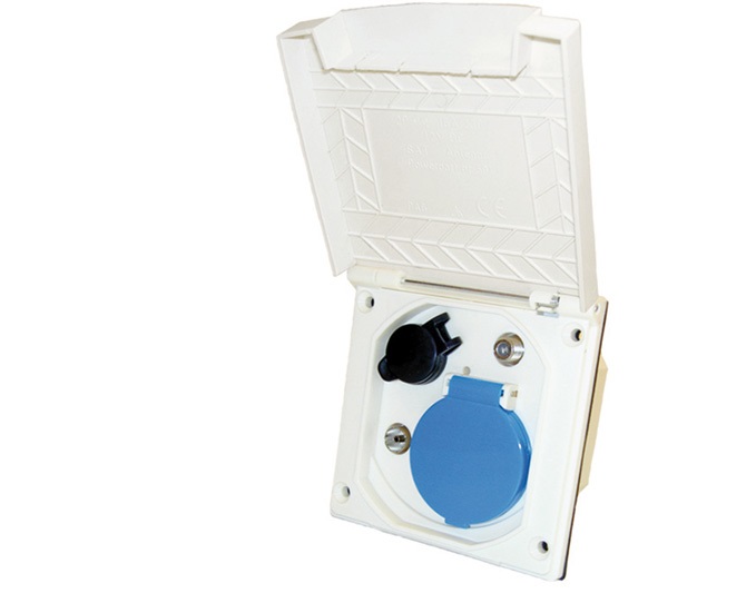 Rasia 230V+12V+tv+sat, upotettava valk Valkoinen, ulosottorasia
