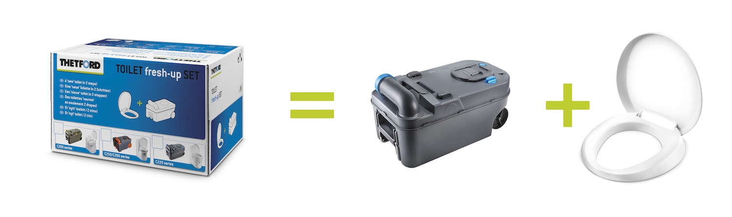 Fresh Up -setti on helppo ja taloudellinen tapa taikoa käytetty kasettikäymälä uudenveroiseksi. Setti on korkealaatuinen, käytännöllinen sekä pitkäkestoinen kumppani matkailuun. Fresh Up -settiä voi käyttää pitkillä matkoilla esimerkiksi varatankkina.