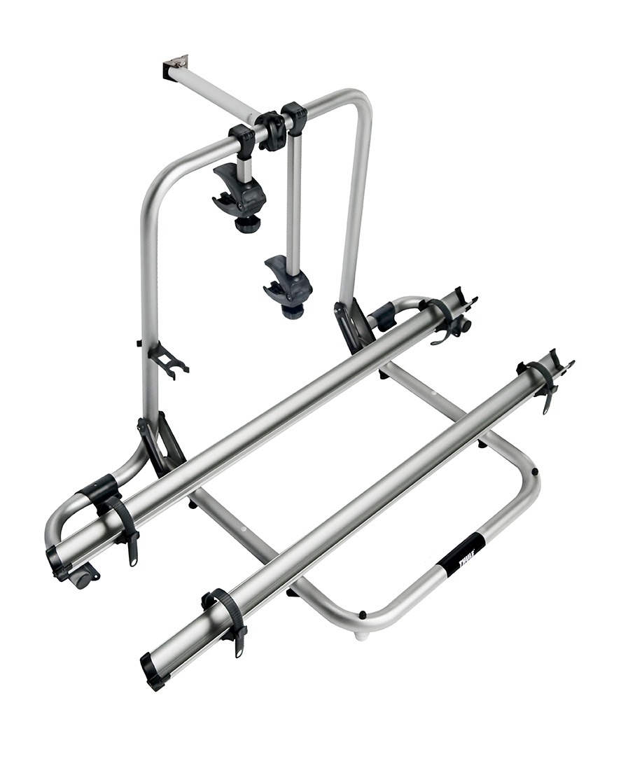 Thule Sport G2 Garage. Tämä erityismalli mahdollistaa polkupyörien säilyttämisen matkailuauton tavaratilassa. Telineessä on säädettävät kiskot, jotka liukuvat helposti vasemmalle tai oikealle, joten polkupyörien optimaalinen sijoittelu on vaivatonta. Telineessä on myös uudet pyöränpitimet, joihin voi lisävarusteena hankkia lukot. Kun teline ei ole käytössä, sen voi taittaa kokoon. Lisävarusteena saatavilla olevien kolmannen ja neljännen kourun ja pyöränpitimen avulla telineeseen mahtuu jopa neljä polkupyörää.