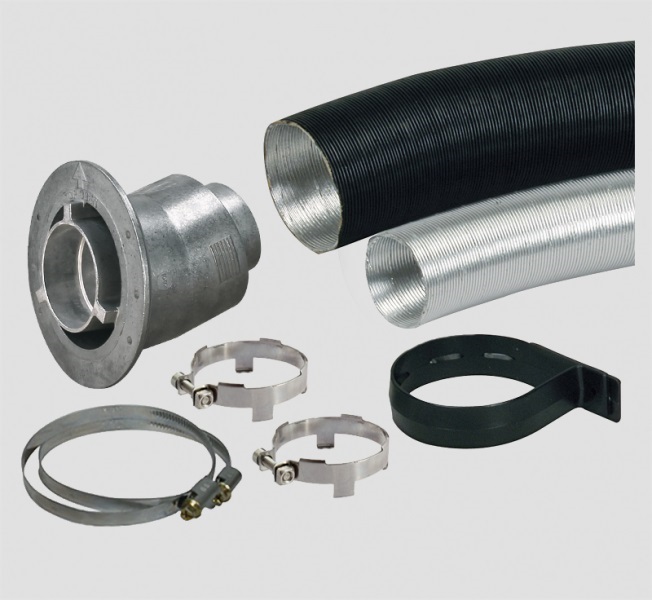 Sarjaan kuuluu seinäläpivienti, pakoputki 1m ja pakoputken suojaputki 1,1m. Seinäläpiviennin ulko-osa ei sisälly toimitukseen.(36151- eri värejä).